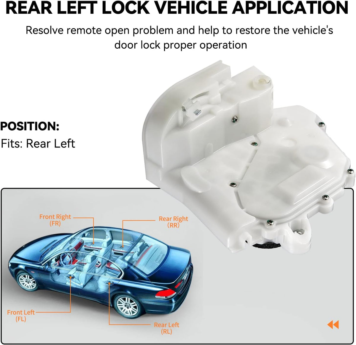 [Positions] - Replace Driver Side and Rear Left Door Lock Actuator: If the lifter of your vehicle cannot be locked or is not properly unlocked,the problem may be in the lock actuator, This latch is manufactured to the OE specification to provide factory-fresh appearance and direct-fit, that enables proper door locking function. OE connector helps ensure a solid, positive connection.