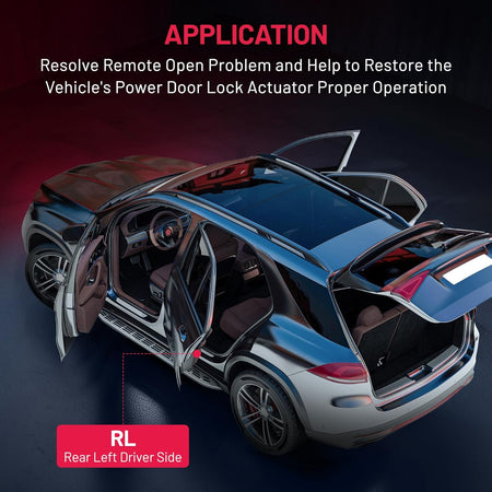 [Positions] - REPLACE RL Rear Left Driver Side Lock Actuator. This latch is manufactured to the OE specification to provide factory-fresh appearance and direct-fit, that enables proper door locking function. OE connector helps ensure a solid, positive connection.