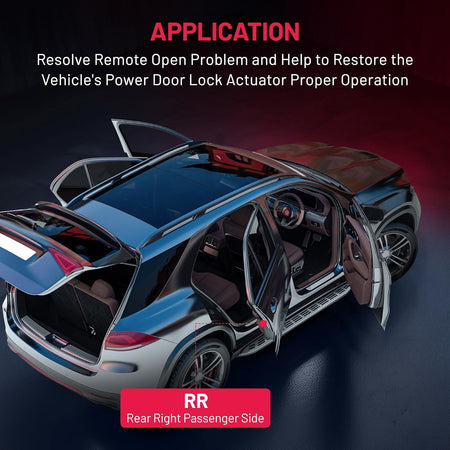 [Positions] - REPLACE RR Rear Right Passenger Side Lock Actuator. This latch is manufactured to the OE specification to provide factory-fresh appearance and direct-fit, that enables proper door locking function. OE connector helps ensure a solid, positive connection.