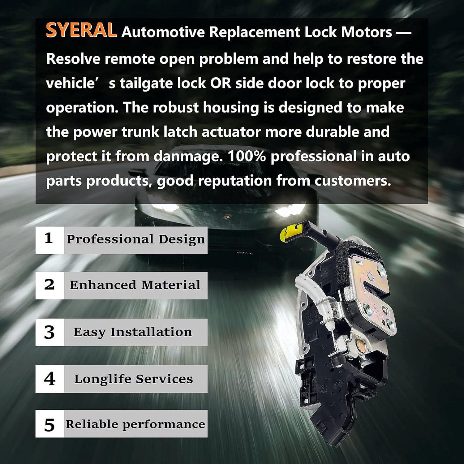 Service: 1-year Assurance. All SYERAL automotive replacement power door lock motors undergo rigorous testing during manufacturing to ensure top quality. We stand behind the quality of our products, if you have any questions, please do not hesitate to contact us. Your satisfaction is our top priority
