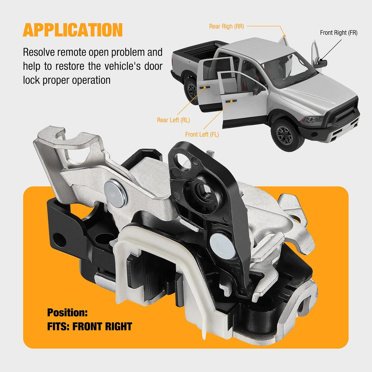 [] - Replace Front Right Passenger Side Latch Actuator. This latch is manufactured to the OE specification to provide factory-fresh appearance and direct-fit, that enables proper door locking function.