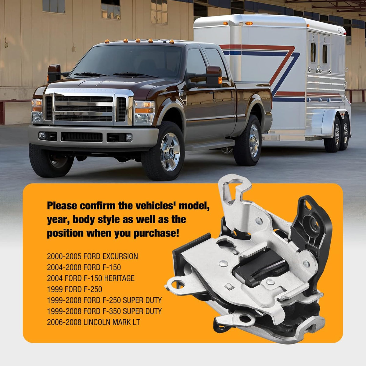 [ ] - The lock actuator is Compatible with Ford Excursion 2000-2005, 2004-2008 F-150, 2004 F-150 Heritage, 1999 F-250, 1999-2008 F-250 Super Duty, 1999-2008 F-350 Super Duty, Compatible with Lincoln Mark LT 2006-2008. See below for the full vehicle list please