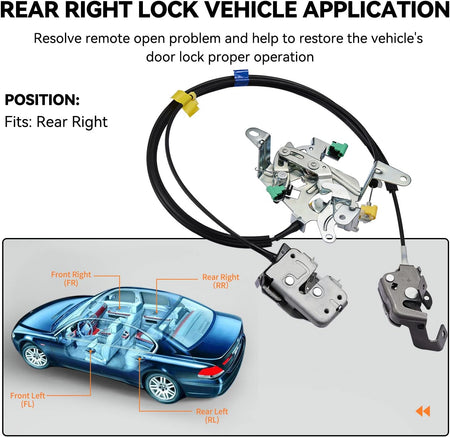 [Positions] - Replace Passenger Side Rear Right Door Lock Actuator: If the lifter of your vehicle cannot be locked or is not properly unlocked,the problem may be in the lock actuator, This latch is manufactured to the OE specification to provide factory-fresh appearance and direct-fit, that enables proper door locking function. OE connector helps ensure a solid, positive connection.