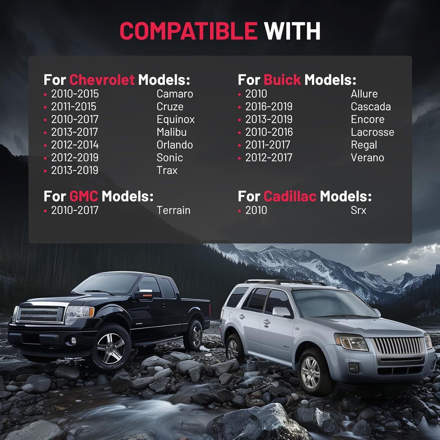 【Perfect Fit】The lock actuator is compatible with Buick Allure 2010, 2016-2019 Cascada, 2013-2019 Encore, 2010-2016 Lacrosse, 2011-2017 Regal, 2012-2017 Verano, compatible with Cadillac Srx 2010, compatible with Chevy Camaro 2010-2015, 2011-2015 Cruze, 2010-2017 Equinox, 2013-2017 Malibu, 2012-2014 Orlando, 2012-2019 Sonic, 2013-2019 Trax, compatible with GMC Terrain 2010-2017.
