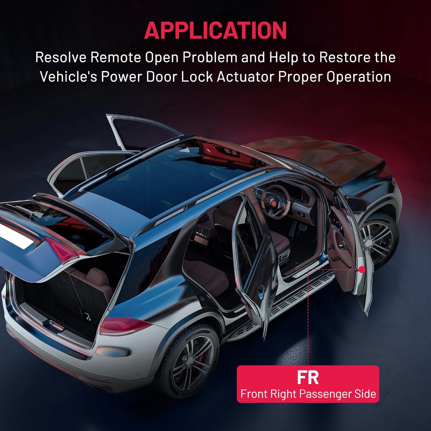 【Positions】REPLACE FR Front Right Passenger Side Lock Actuator. This latch is manufactured to the OE specification to provide factory-fresh appearance and direct-fit, that enables proper door locking function. OE connector helps ensure a solid, positive connection.