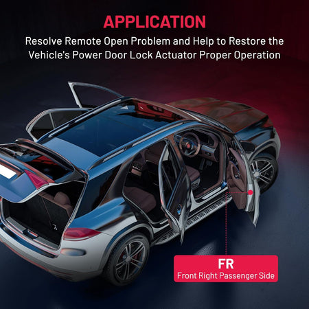 [Positions] - REPLACE FR Front Right Passenger Side Lock Actuator. This latch is manufactured to the OE specification to provide factory-fresh appearance and direct-fit, that enables proper door locking function. OE connector helps ensure a solid, positive connection.