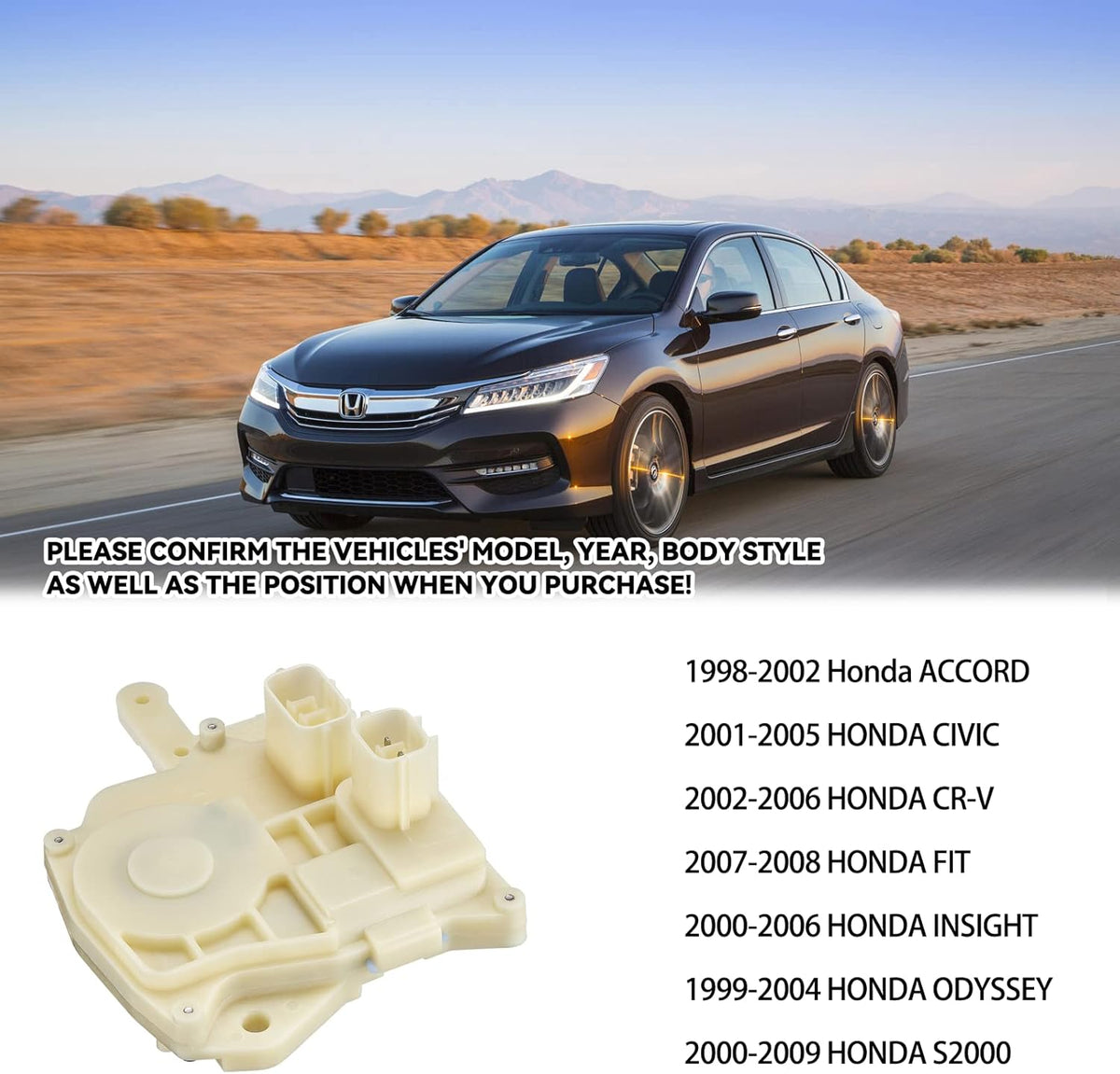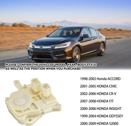 [ ] - The lock actuator is compatible with HONDA 1998-2002 ACCORD, 2001-2005 CIVIC, 2002-2006 CR-V, 2000-2006 INSIGHT, 2000-2009 S2000, 2007-2008 FIT. See below for the full vehicle list please