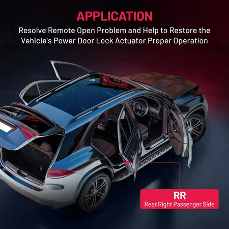 [Positions] - REPLACE RR Rear Right Passenger Side Lock Actuator. This latch is manufactured to the OE specification to provide factory-fresh appearance and direct-fit, that enables proper door locking function. OE connector helps ensure a solid, positive connection.