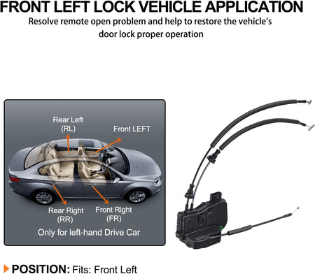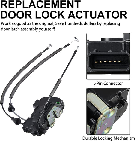 [] - Replace Front Left Driver Side Latch Actuator. This latch is manufactured to the OE specification to provide factory-fresh appearance and direct-fit, that enables proper door locking function.