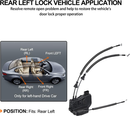 [] - Replace Rear Left Driver Side Latch Actuator. This latch is manufactured to the OE specification to provide factory-fresh appearance and direct-fit, that enables proper door locking function.