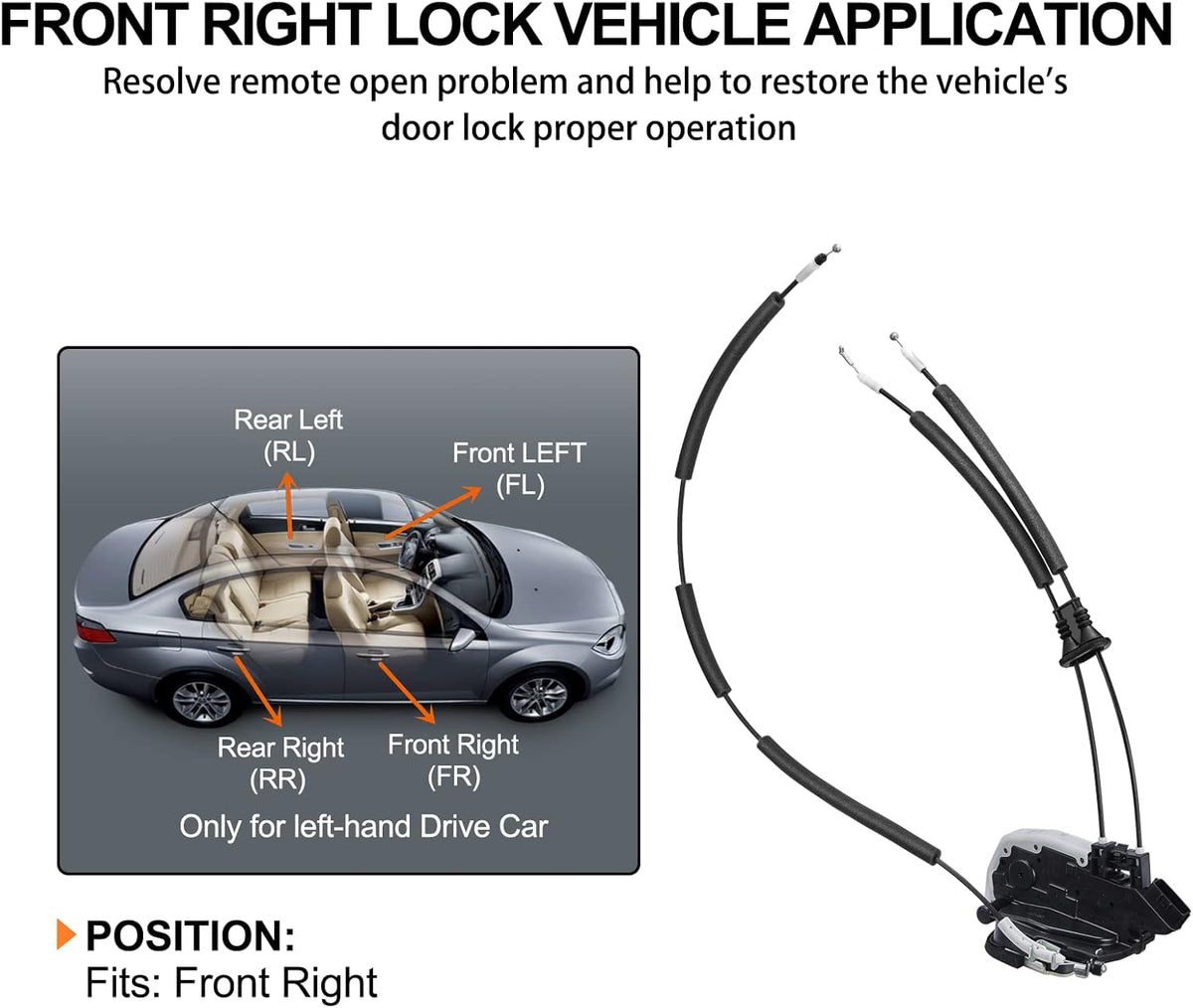 [] - Replace Front Right Passenger Side Latch Actuator. This latch is manufactured to the OE specification to provide factory-fresh appearance and direct-fit, that enables proper door locking function.