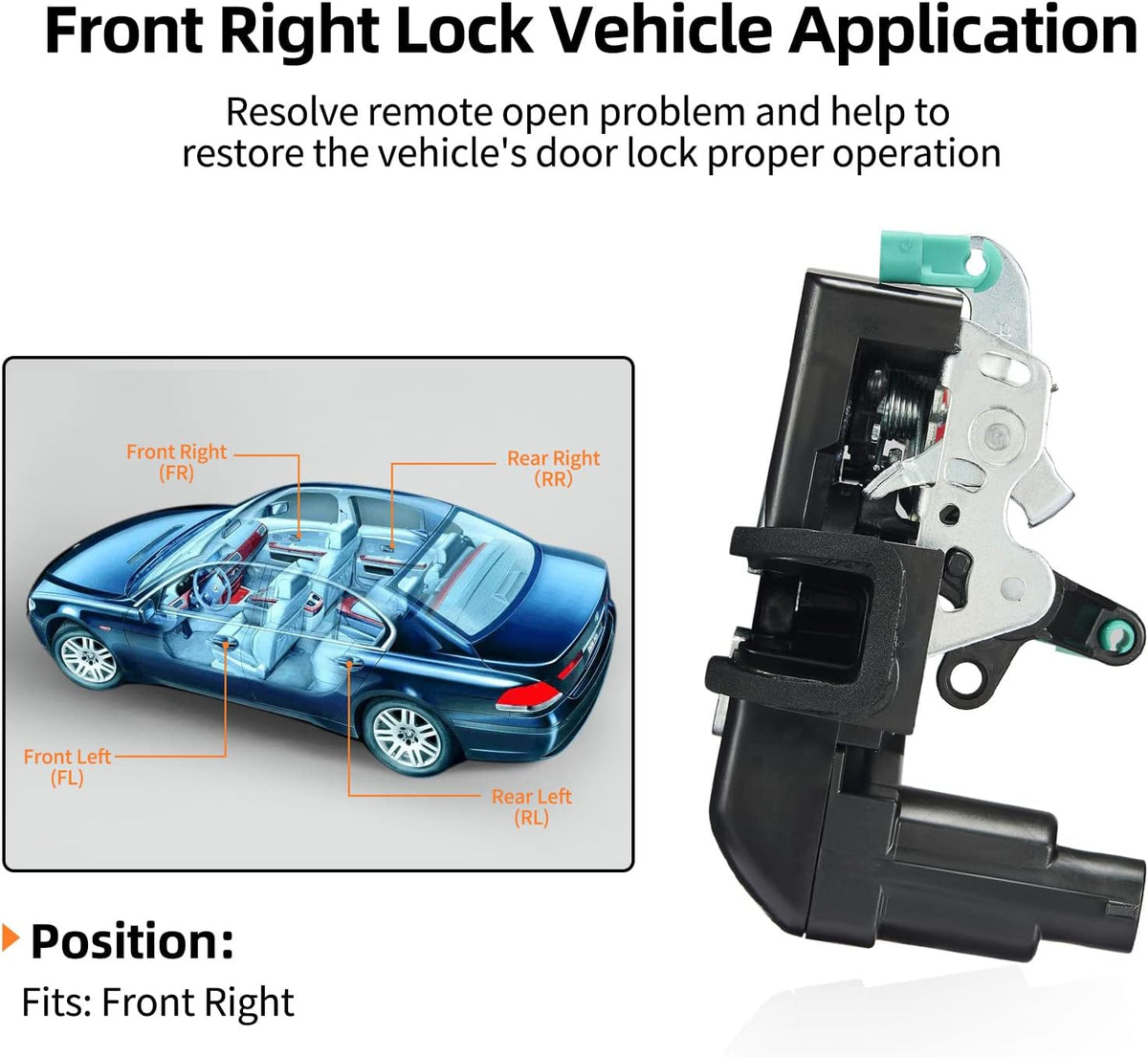 [Positions] - Replace Front Right Passenger Side Lock Actuator: If the lifter of your vehicle cannot be locked or is not properly unlocked,the problem may be in the lock actuator, This latch is manufactured to the OE specification to provide factory-fresh appearance and direct-fit, that enables proper door locking function. OE connector helps ensure a solid, positive connection.