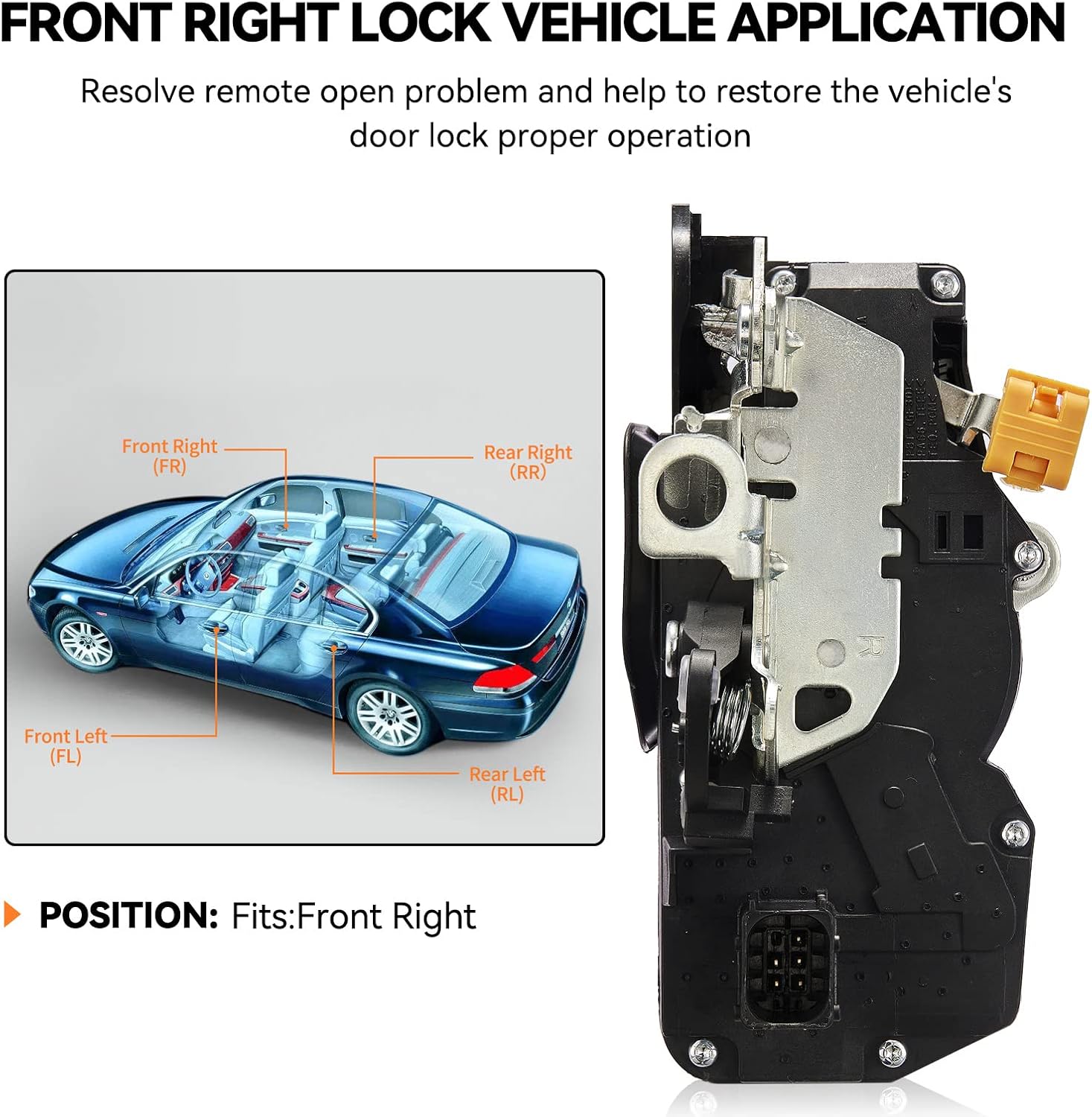 [Positions] - Replace Passenger Side and Front Right Door Lock Actuator: If the passenger side lifter of your vehicle cannot be locked or is not properly unlocked,the problem may be in the lock actuator, This latch is manufactured to the OE specification to provide factory-fresh appearance and direct-fit, that enables proper door locking function. OE connector helps ensure a solid, positive connection.