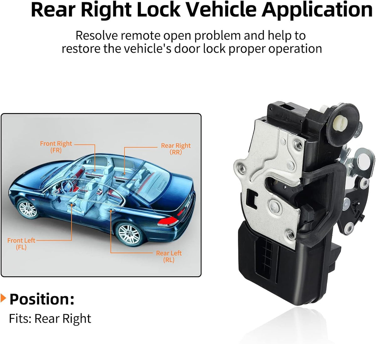 [Positions] - Replace Rear Right Lock Actuator: If the Rear Right lifter of your vehicle cannot be locked or is not properly unlocked,the problem may be in the lock actuator, This latch is manufactured to the OE specification to provide factory-fresh appearance and direct-fit, that enables proper door locking function. OE connector helps ensure a solid, positive connection.