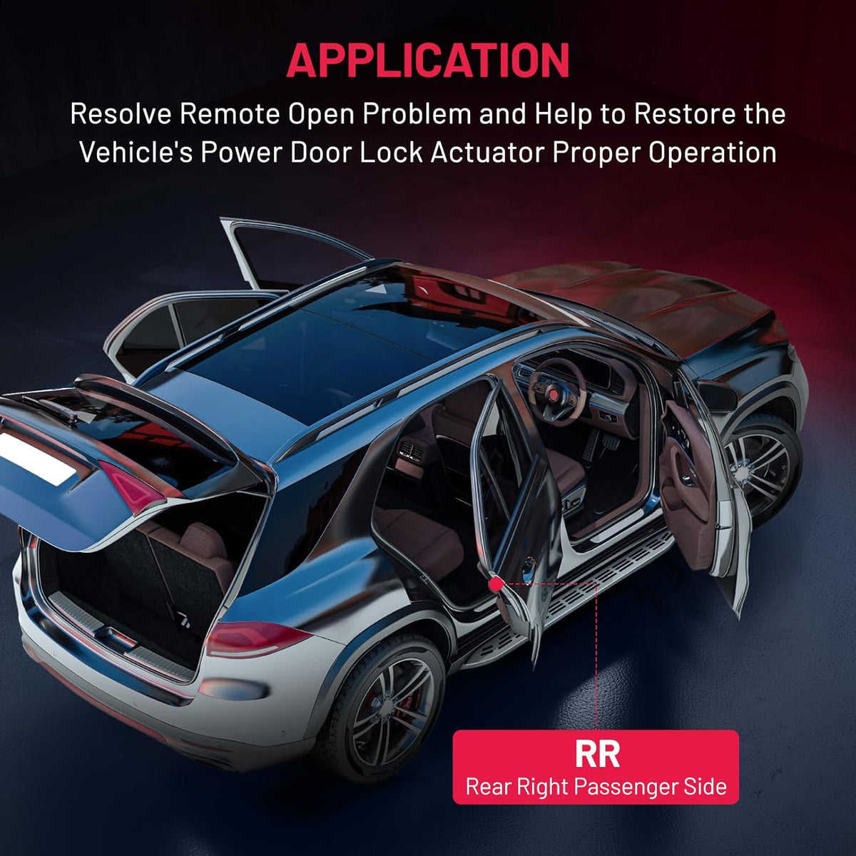 [Positions] - REPLACE RR Rear Right Passenger Side Lock Actuator. This latch is manufactured to the OE specification to provide factory-fresh appearance and direct-fit, that enables proper door locking function. OE connector helps ensure a solid, positive connection.
