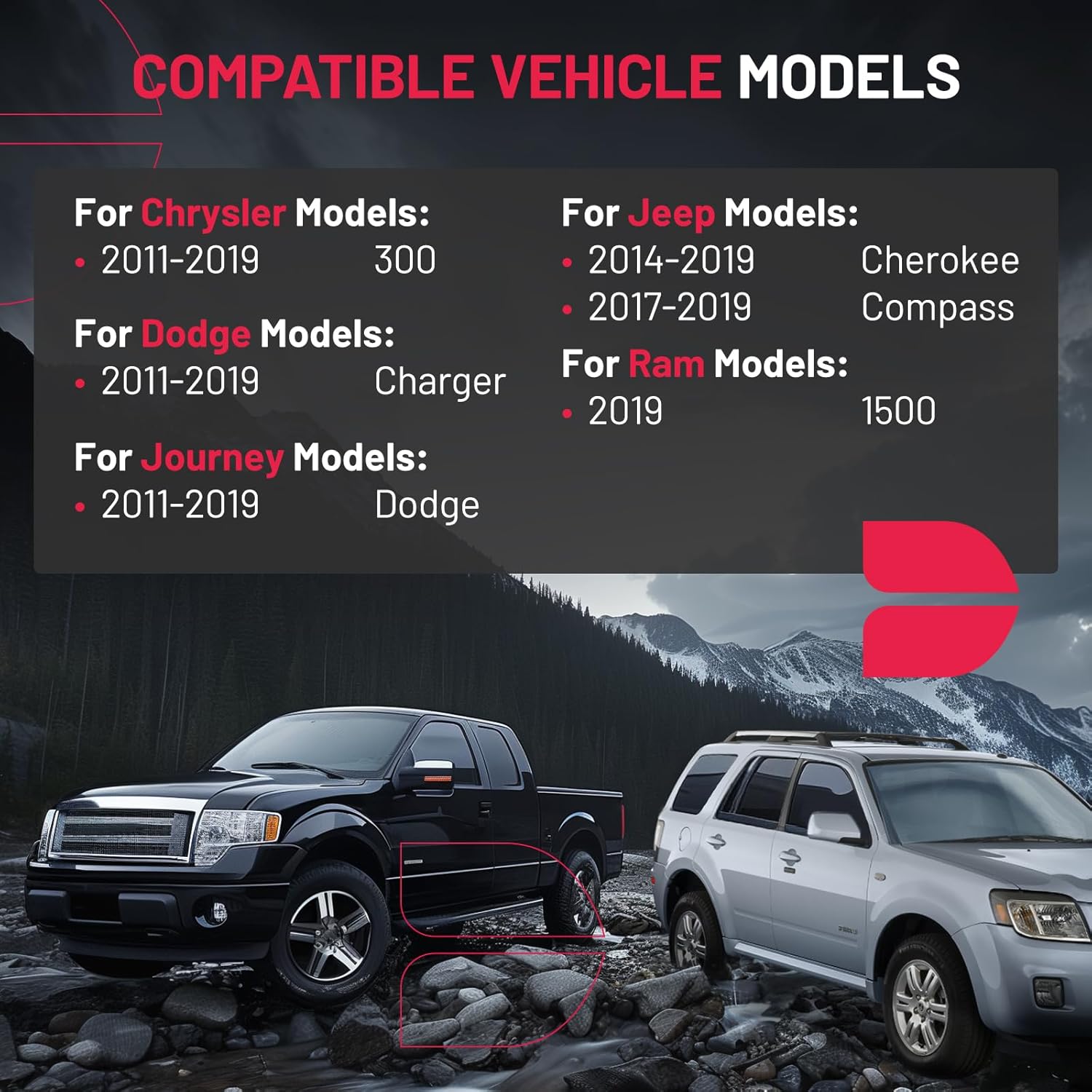 【Compatibility】The door lock latch actuator Compatible with Chrysler 300 2011-2019; Compatible with Dodge Charger 2011-2019; Journey 2011-2019; Compatible with Jeep Cherokee 2014-2019; Compass 2017-2019; Compatible with Ram 1500 2019.