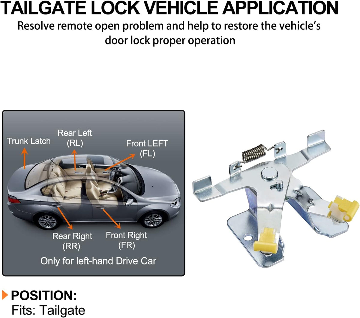 [] - Replace Tailgate Liftgate Trunk Latch Actuator. This latch is manufactured to the OE specification to provide factory-fresh appearance and direct-fit, that enables proper door locking function.