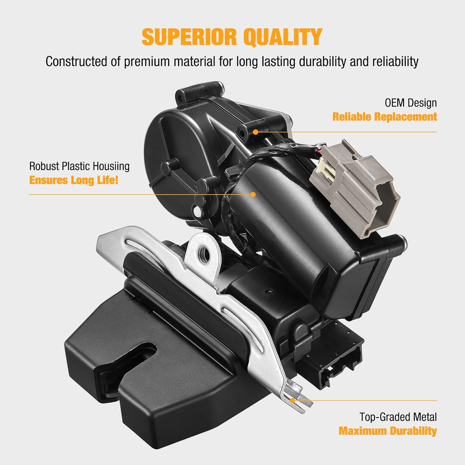 [ ] - This Liftgate Latch Lock matches fit and function of the original equipment actuator motor to restore proper trunk latch functions, has undergone extensive quality and safety testing to ensure reliable performance. It is engineered to provide a direct replacement for the stock actuator on specific vehicle years, makes and models.