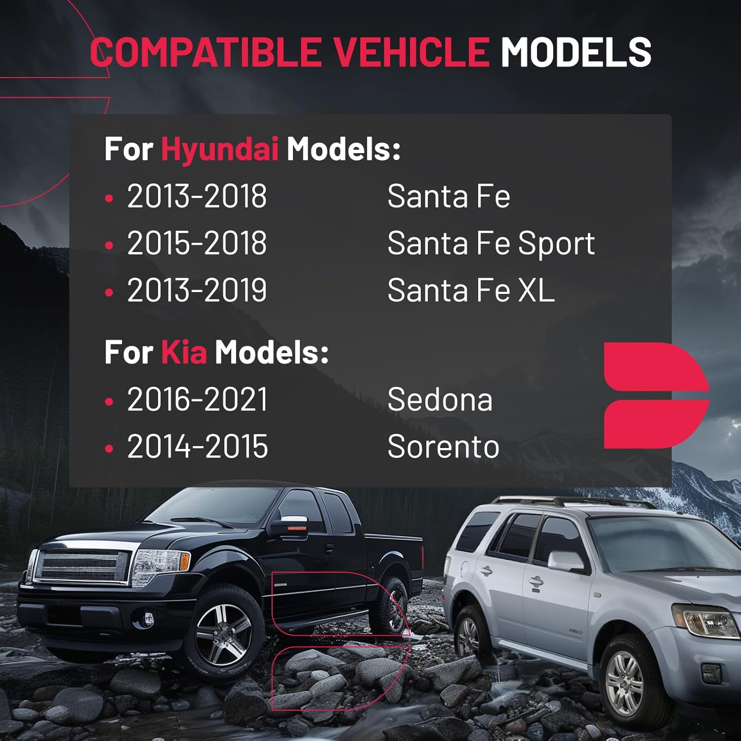 【Compatibility】The door lock latch actuator Compatible with Hyundai Santa Fe 2013-2018; Santa Fe Sport 2015-2018; Santa Fe XL 2013-2019; Compatible with Kia Sedona 2016-2021; Sorento 2014-2015.
