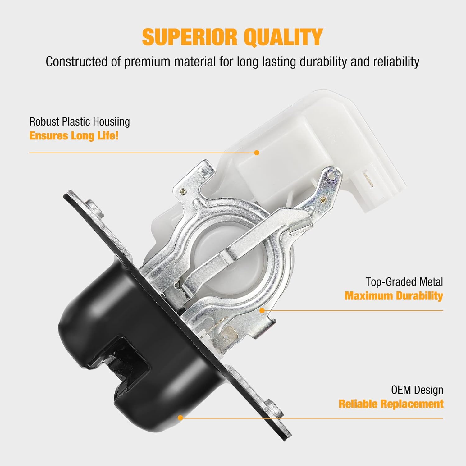 [ ] - This Liftgate Latch Lock matches fit and function of the original equipment actuator motor to restore proper trunk latch functions, has undergone extensive quality and safety testing to ensure reliable performance. It is engineered to provide a direct replacement for the stock actuator on specific vehicle years, makes and models.
